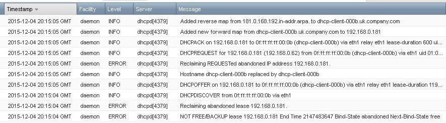 In the following screen shot you can see that the DHCP server successfully reclaims an abandoned lease (192.168.0.181) in response to a DHCPDISCOVER and offers it to a new client: