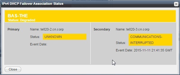 dhcpd[1802]: info failover peer BAS-THE(1447370032p): I move from normal to communications-interrupted
