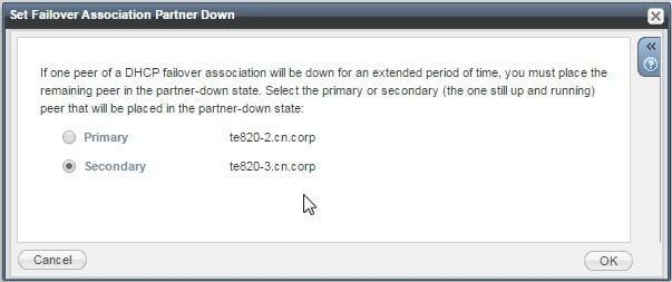 I’ve heard someone say “we could just disable the switch port” the peer is connected to. This won’t work as the DHCP service will still be running. Remember that the peers keep a log of the ‘Start Time Of State (STOS), so when both peers start talking again, they will check when they entered the last state and you could (more likely will) get a conflict.